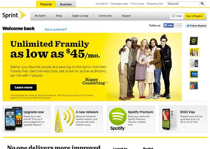 This is why companies maintain a consistent color profile on their web designs. It is something that enables customers to connect to their brand, instantly. This is evident in the example with Sprint, shown above. The signature yellow is carried throughout the site, so you immediately know whose site you are on.